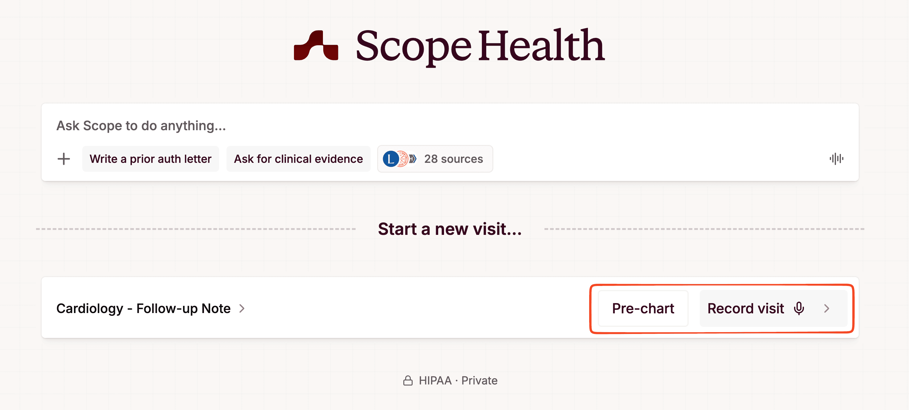 - Click "Record visit" to start recording, or "Pre-chart" to go straight to editing