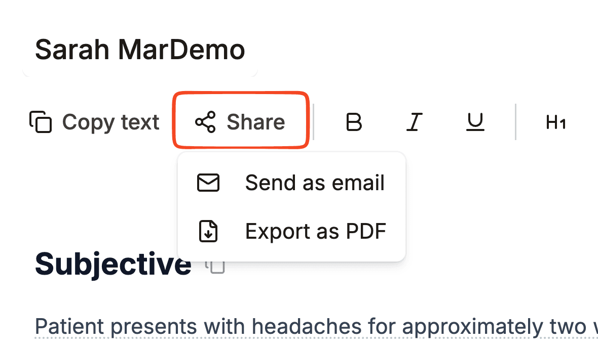 - Highlight the text you need, press Cmd+C / Ctrl+C, then Cmd+V / Ctrl+V to paste into your EHR or another document