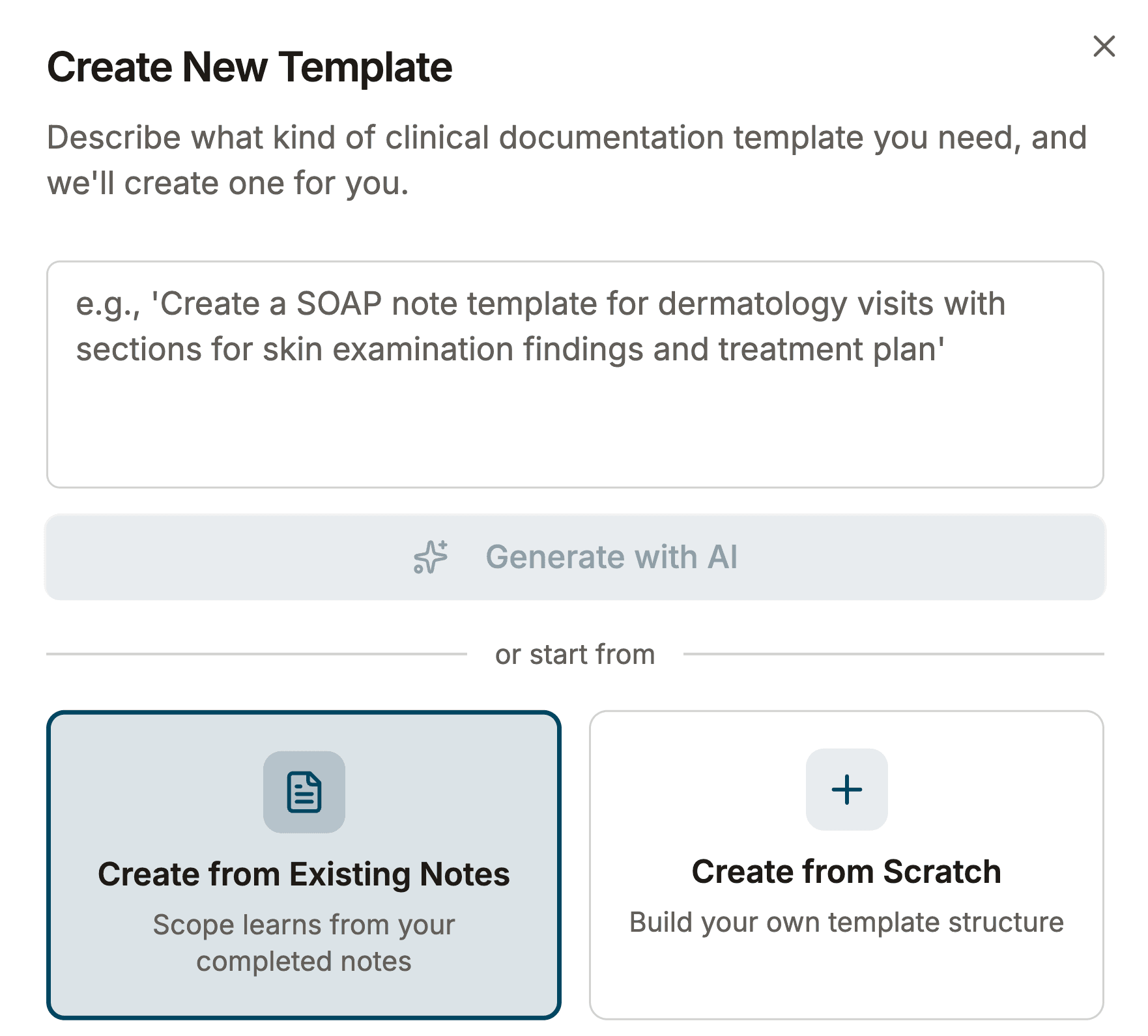 Paste up to 5 examples of your previous notes, and Scope will analyze them to create a reusable template that matches your style.