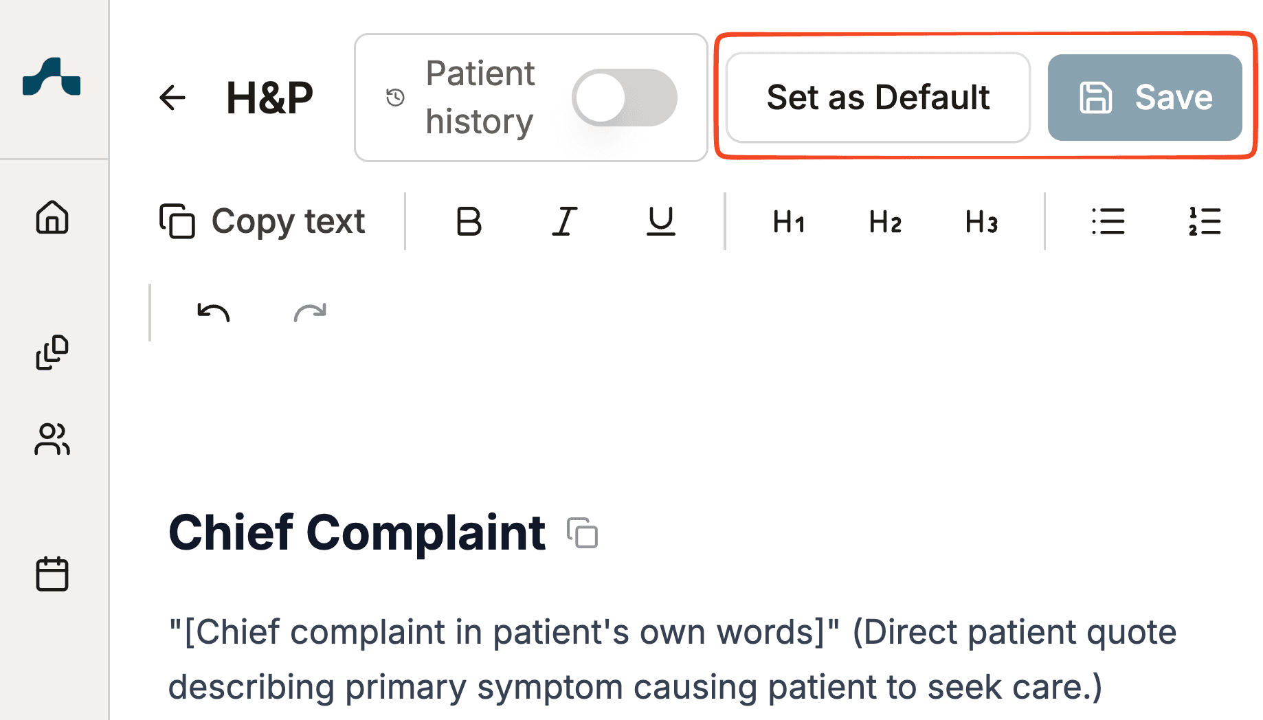 - Add Instructions: Include bracketed placeholders like [Patient name] that guide note generation